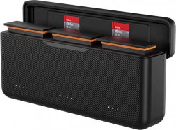 Kompaktowa trzykanałowa ładowarka TELESIN S0-BCG-02-TIS do kamer DJI Osmo Action 3 i 4 umożliwia jednoczesne ładowanie do trzech akumulatorów, a jednocześnie pełni funkcję ochronnego etui do bezpiecznego przechowywania. Oferuje szybkie i stabilne ładowanie, inteligentne zabezpieczenia przed przegrzaniem, przepięciem i przeładowaniem oraz praktyczne wskaźniki LED stanu. Idealna w podróży dzięki kompaktowym wymiarom i miejscu na karty TF (microSD).