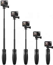 Telesin mini statyw/kijek selfie 2.0 to uniwersalne akcesorium do kamer sportowych, takich jak GoPro HERO, DJI ACTION, ACE PRO czy X4. Oferuje stabilność i pewny chwyt w terenie, w podróży oraz podczas transmisji na żywo. Wytrzymałe aluminiowe korpusy uzupełnia ergonomiczny, pokryty silikonem uchwyt dla bezpiecznego trzymania.
