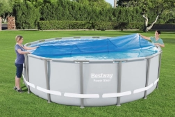 Solarny pokrowiec na basen BESTWAY to praktyczne akcesorium, które zwiększa komfort kąpieli i obniża koszty utrzymania. Struktura bąbelkowa wykorzystuje energię słoneczną do podgrzewania wody, a jednocześnie minimalizuje straty ciepła. Dzięki precyzyjnemu, okrągłemu kształtowi idealnie pasuje do basenów o średnicy 4,62 m.