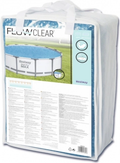 Folia solarna jest przeznaczona do basenów o średnicy 427 cm lub 457 cm. Zalety: zwiększa temperaturę wody i tym samym wydłuża sezon kąpielowy, chroni przed zanieczyszczeniami, unosi się na powierzchni wody. Średnica folii wynosi 417 cm.
