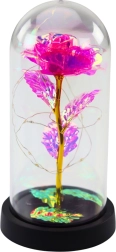 Kryształowa róża pod kopułą z oświetleniem LED to elegancki i symboliczny prezent, który wyraża Twoje uczucia i wprowadza wyjątkowy charakter do każdego wnętrza. Jej zmieniające się kolory pod wpływem delikatnego światła LED tworzą niezapomnianą atmosferę, idealną na romantyczne okazje.