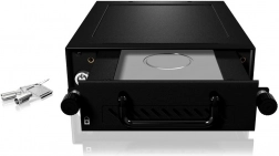 Uniwersalna hot‑swap klatka do zatoki 5,25" dla dysków 3,5" i 2,5" z interfejsem SATA/SAS. Oferuje prędkość do 6 Gb/s, metalową konstrukcję, zabezpieczenie zamkiem przed nieuprawnionym dostępem oraz aktywne chłodzenie wentylatorem 30 mm. Wspiera Plug & Play i Hot Swap dla łatwej wymiany dysków bez wyłączania.