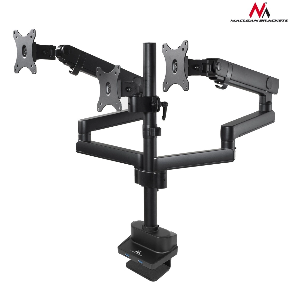 Ten profesjonalny uchwyt na trzy monitory został zaprojektowany z myślą o nowoczesnych stanowiskach pracy w biurze i w domu. Umożliwia płynną regulację nachylenia, obrotu i wysokości, dzięki czemu łatwo uzyskasz idealny kąt widzenia, zmniejszysz zmęczenie oczu i wesprzesz prawidłową postawę ciała. Solidna aluminiowa konstrukcja gwarantuje stabilność i długą żywotność.