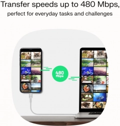 Dzięki wsparciu technologii USB Power Delivery (PD) ten kabel oferuje ultraszybkie ładowanie urządzeń do 100 W. Transfer danych do 480 Mb/s zapewnia sprawne przesyłanie bez zbędnych opóźnień.