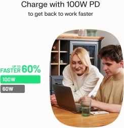 Zapewnia błyskawiczne ładowanie urządzeń – od słuchawek po laptopy – dzięki wsparciu USB Power Delivery.