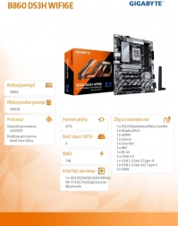 Gigabyte B860 DS3H WIFI 6E to nowoczesna płyta główna zaprojektowana dla wymagających użytkowników i konstruktorów, którzy oczekują połączenia wydajności, stabilności i łatwego montażu. Hybrydowa sekcja zasilania 8+1+2 zapewnia czyste napięcie dla procesorów Intel Core Ultra, a zaawansowane chłodzenie z radiatorem M.2 utrzymuje dyski SSD w optymalnej kondycji.