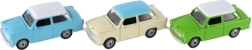Ikoniczny model samochodu Trabant marki Welly w skali 1:60 ucieszy małych i dużych kolekcjonerów. Metalowe wykonanie, otwierane drzwi, szczegółowe wnętrze oraz wolnobieg zapewniają świetne wrażenia z zabawy i ekspozycji. Długość ok. 7 cm, mix kolorów, odpowiednie od 3 lat.