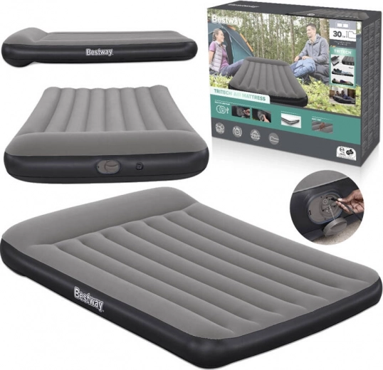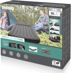 Materac dmuchany Bestway TRITECH to niezawodny towarzysz noclegów w domu i w podróży. Wewnętrzna konstrukcja TRITECH jest wzmocniona dla długotrwałego utrzymania kształtu i większej odporności na rozciąganie niż standardowe PVC. Przyjemna, welurowa powierzchnia zwiększa komfort i zapobiega ślizganiu się pościeli.