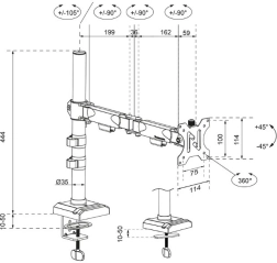 Ten w pełni ruchomy uchwyt jest przeznaczony do monitorów o przekątnej od 10" do 32" i maksymalnej wadze 8 kg. Dzięki możliwości pochyłu (-45° do 45°), obrotu (360°) i przekręcenia (-90° do 90°) zapewnia optymalną ergonomię. Uchwyt wykonany jest z trwałej stali, co gwarantuje długą żywotność i stabilność. Montaż jest łatwy dzięki systemowi Easy-release, który umożliwia szybkie zamocowanie i odłączenie monitora.
