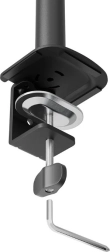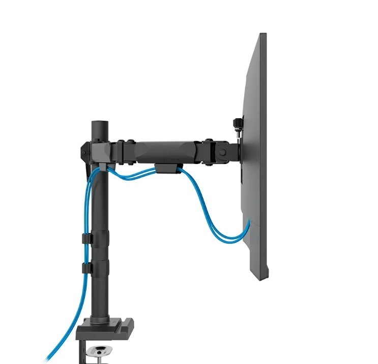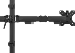 Uchwyt jest kompatybilny z VESA 75x75 lub 100x100 mm i umożliwia użycie opcjonalnych adapterów dla niestandardowych rozstawów otworów. Dla łatwego montażu wyposażono go w system Easy-release, który ułatwia instalację i demontaż monitorów. Możliwy jest także montaż z użyciem klamry lub przelotu, co przyspiesza cały proces.