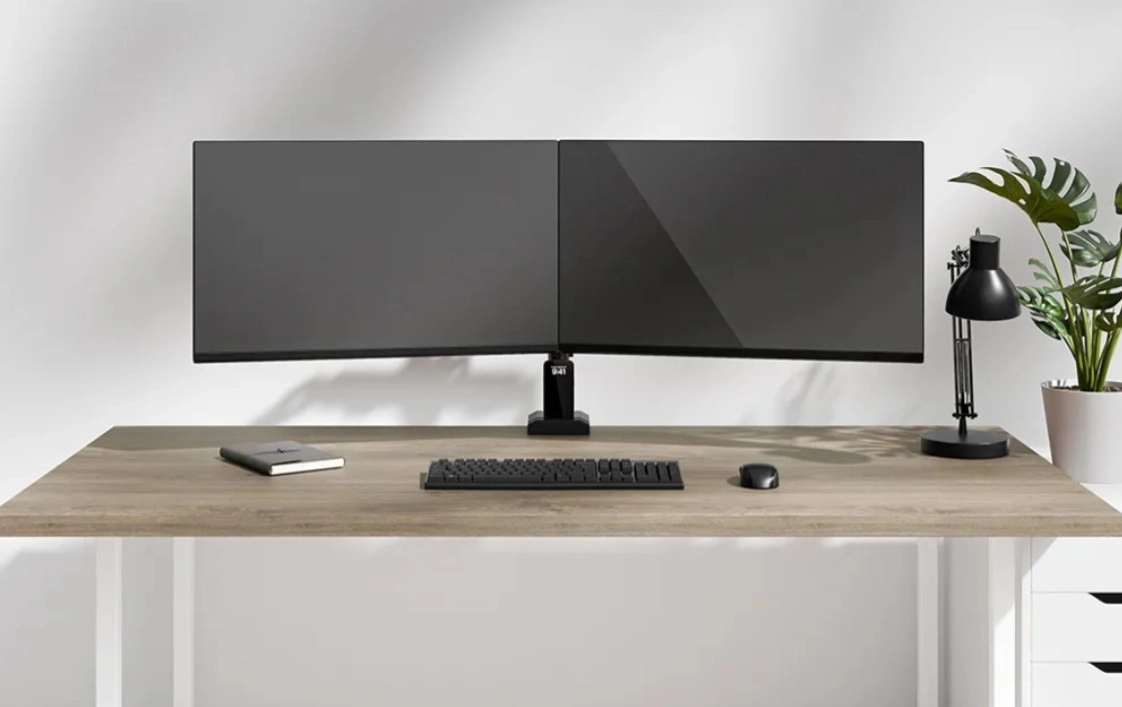 Oferuje ergonomiczną pozycję dzięki możliwości pochylania i obracania monitorów, co pomaga zmniejszać zmęczenie podczas długiego dnia pracy.