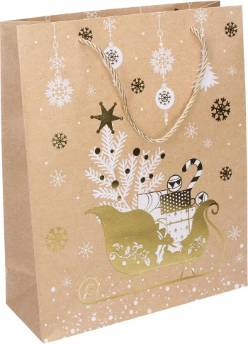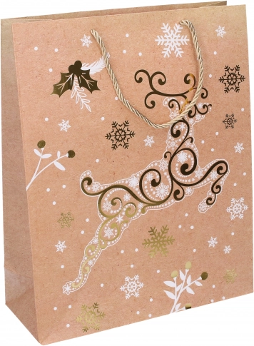 Stylowa torebka prezentowa w rozmiarze M o wymiarach 26 × 32 × 10 cm jest idealna do pakowania świątecznych upominków. Oferuje 4 różne świąteczne motywy, solidne wykonanie oraz praktyczne uchwyty dla wygodnego noszenia.
