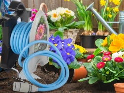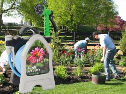 Praktyczny stojak z haczykiem oszczędza miejsce, ułatwia przenoszenie i pozwala na szybkie nawinięcie węża bez supłów.