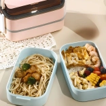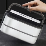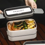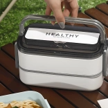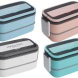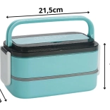 Praktyczny dwupoziomowy bento box o pojemności 1400 ml do wygodnego i zdrowego jedzenia w podróży. Dzięki hermetycznemu zamknięciu, przegrodom i bezpiecznym bocznym klipsom Twoje jedzenie pozostaje świeże i oddzielone. Idealny do pracy, szkoły, na uczelnię i piknik, w zestawie praktyczne sztućce, a pudełko można podgrzewać w kuchence mikrofalowej.