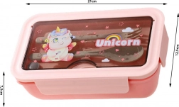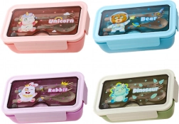Pojemnik wykonany jest z wytrzymałego tworzywa sztucznego i oferuje łączną pojemność 1 l, idealną na śniadania, obiady i przekąski. Kompaktowe wymiary mieszczą się w plecaku szkolnym lub torbie do pracy. Do wyboru jest kilka kolorów: różowy, niebieski, fioletowy, zielony.