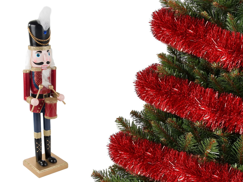 Ikoniczna figurka dziadka do orzechów w odświętnej mundurze należy do najpopularniejszych świątecznych dekoracji. Dzięki jakościowemu drewnu, solidnemu wykonaniu i ręcznie malowanym detalom przyciąga wzrok i podkreśla świąteczny nastrój Bożego Narodzenia. Stylowa podstawka zapewnia stabilność i łatwe ustawienie na dowolnej powierzchni.