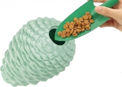 Interaktywny stożek na smakołyki to idealna pomoc dla psów w każdym wieku. Napełnij go karmą lub przysmakami i pozwól psu, by nagrodę zdobył w naturalny sposób – turlając, żując i testując różne strategie. Teksturowana powierzchnia jednocześnie przyczynia się do mechanicznego czyszczenia zębów.