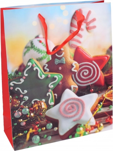 Praktyczna i stylowa świąteczna torba prezentowa w rozmiarze M do wyjątkowego pakowania Twoich świątecznych prezentów.
