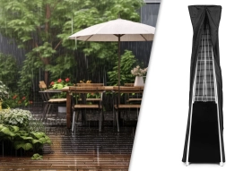 Solidny korpus z malowanej proszkowo stali, wysoki szklany ekran płomienia oraz zamykana szafka na butlę zwiększają bezpieczeństwo i estetykę. Kółka i gumowe stopki ułatwiają manewrowanie i chronią podłoże. W komplecie znajdują się reduktor ciśnienia, wąż z opaskami oraz wodoodporny pokrowiec ochronny dla komfortowej, całorocznej eksploatacji.