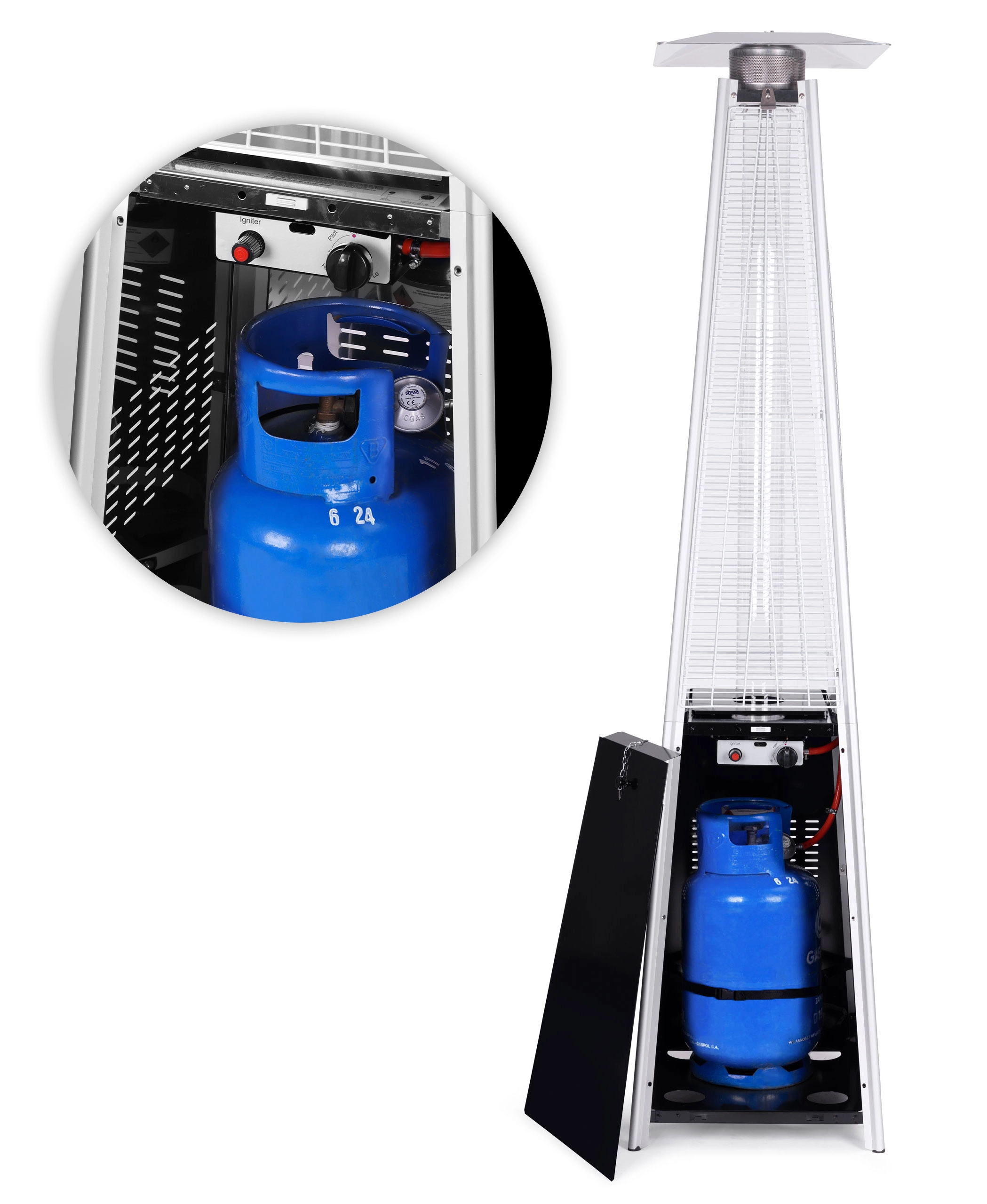 Ten designerski, piramidowy ogrzewacz zamieni każde miejsce w przytulną strefę z widocznym płomieniem. Dzięki mocy 13 kW i wydajnemu spalaniu propan–butanu zapewnia równomierną dystrybucję ciepła na tarasie, balkonie i w ogrodowej altanie. Zapalanie elektryczne na 1× AA (w zestawie) oraz płynna regulacja pozwalają dopasować intensywność ciepła do aktualnych warunków.