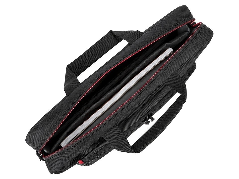 Główna komora z wyściółką niezawodnie chroni laptop przed uderzeniami i zarysowaniami, a górne otwieranie umożliwia szybki dostęp.
