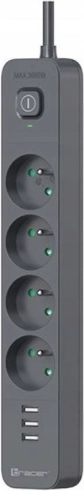 Listwa przeciwprzepięciowa TRACER Power Line+ mobile ready 1,5 m (4 gniazda + 3x USB A, 5V 2,4A)