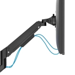 Uchwyt Neomounts DS70-250BL2 jest wyposażony w sprężynę gazową do regulacji wysokości od 21,5 do 49,5 cm oraz regulacji głębokości, co ułatwia dopasowanie do ergonomicznych potrzeb użytkownika.