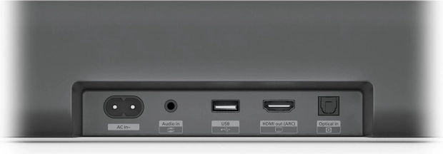 - HDMI (ARC), wejście optyczne (TOSLINK), USB, 3,5 mm audio in (AUX)