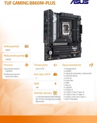 Płyta główna Asus TUF Gaming B860M-PLUS to prawdziwy klejnot wśród płyt głównych, zaprojektowana dla wymagających graczy i entuzjastów technologii. Dzięki gniazdu procesora LGA1851 i wsparciu procesorów Intel Core Ultra zapewnia niezrównaną wydajność i stabilność podczas intensywnego użytkowania.