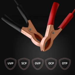 Szybka instalacja: podłącz zacisk czerwony do bieguna +, czarny do bieguna –, wybierz tryb i rozpocznij ładowanie. Kompaktowa i wytrzymała konstrukcja ułatwia użycie w domu i warsztacie.