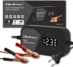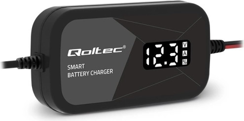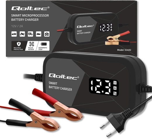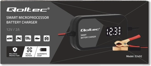 Ta inteligentna ładowarka 12V o prądzie 2A jest idealna do akumulatorów 2–20Ah w samochodach, motocyklach, łodziach, kosiarkach i quadach. Mikroprocesor automatycznie dopasowuje napięcie i prąd do stanu baterii, zapobiega przeładowaniu i po pełnym naładowaniu przechodzi w tryb podtrzymania. Duży wyświetlacz LED/LCD sekwencyjnie prezentuje napięcie (V), prąd (A) oraz poziom naładowania (%) dla łatwego monitorowania.