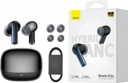 Słuchawki Baseus Bowie M2s są wyposażone w dynamiczne przetworniki z tytanowymi membranami, które zapewniają lepszą odpowiedź częstotliwościową i niższe zniekształcenia dla żywszego i bardziej barwnego brzmienia. Dzięki aktywnej redukcji hałasu osiągają tłumienie do -48 dB i oferują trzy tryby: Podróż, Wewnątrz i Na zewnątrz.