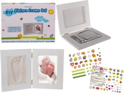 Stwórz wyjątkową pamiątkę z pierwszych miesięcy życia Twojego maluszka. Ta elegancka ramka łączy miejsce na fotografię oraz przestrzeń na odcisk z bezpiecznej masy plastycznej, która jest częścią zestawu. Wystarczy przygotować glinkę, delikatnie odcisnąć w niej rączkę lub stópkę i pozostawić do wyschnięcia. Efektem będzie oryginalna dekoracja, która zachowa wspomnienia na zawsze.