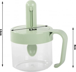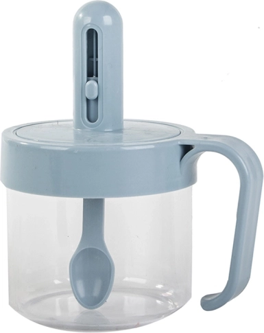 Łyżeczka zabudowana w pokrywce pozwala dokładnie odmierzyć sól, cukier lub przyprawy. Za pomocą suwaka ustawisz idealną porcję bez niepotrzebnego rozsypywania.