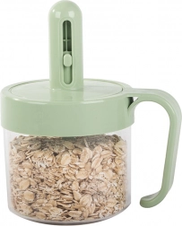 Ten kompaktowy pojemnik z wytrzymałego plastiku zaprojektowano do codziennego użytkowania w kuchni i spiżarni. Praktyczna pokrywka z wbudowaną wysuwaną łyżeczką i suwakiem pomaga odmierzyć dokładną ilość składników bez dodatkowych akcesoriów. Hermetyczne zamknięcie chroni zawartość przed wilgocią i gwarantuje długotrwałą świeżość.