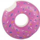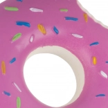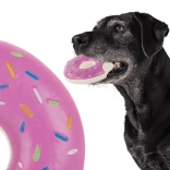 Zabawna gumowa zabawka w kształcie donuta z piszczałką ucieszy każdego psa. Przy naciśnięciu lub ugryzieniu wydaje piszczący dźwięk, który przyciąga uwagę i wspiera aktywną zabawę. Wytrzymałe, gumowe wykonanie idealnie nadaje się do żucia, aportowania oraz samodzielnej zabawy, aby Twój pupil nie nudził się w domu ani na zewnątrz.