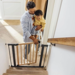 Specjalny mechanizm bezpieczeństwa uniemożliwia dzieciom otwarcie bariery. Dwukierunkowe otwieranie, automatyczne zamykanie i obsługa jedną ręką zapewniają łatwość użytkowania.