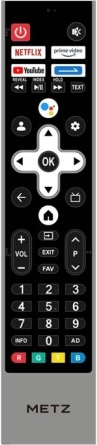 Steruj swoim telewizorem METZ łatwo i szybko dzięki inteligentnemu pilotowi, który ma przyciski do serwisów streamingowych, takich jak Netflix i YouTube.