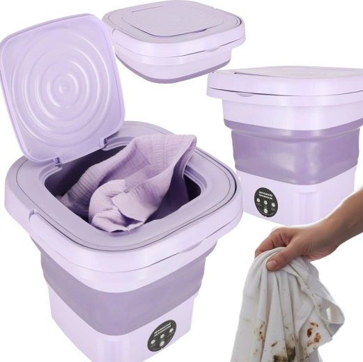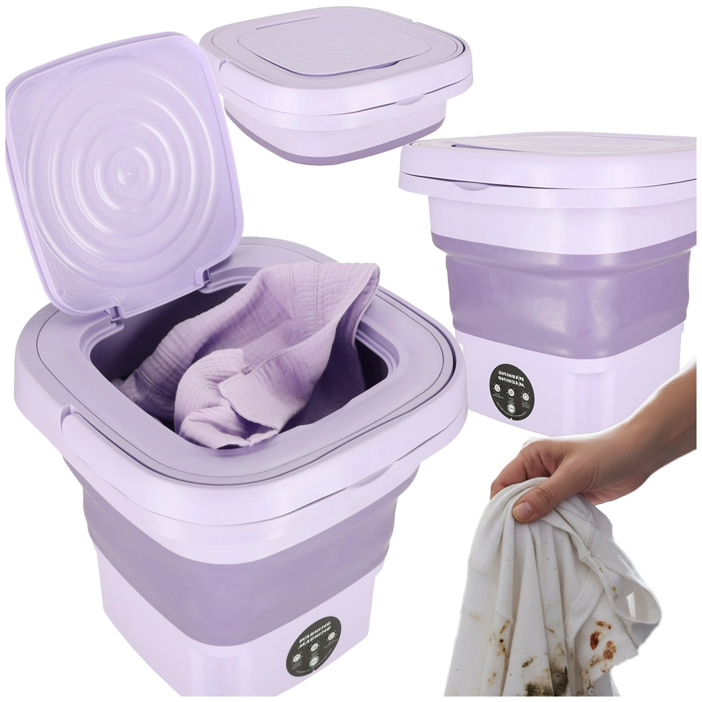 Uczyń podróżowanie przyjemnym bez brudnych ubrań dzięki składanej przenośnej mini pralce o pojemności 8 l z funkcją prania i wirowania. Kompaktowa konstrukcja oszczędza miejsce, niskie zużycie wody i energii redukuje koszty, a szybkie wirowanie skraca czas suszenia – idealna na kemping, do kampera, na działkę i do małych mieszkań.
