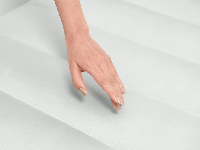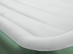 Górna powierzchnia materaca jest pokryta miękkim, flokowanym materiałem, który jest przyjemny w dotyku, a jednocześnie odporny na zużycie. Materiał Tough Guard Fortech łączy elastyczność PVC z wytrzymałością tkaniny.