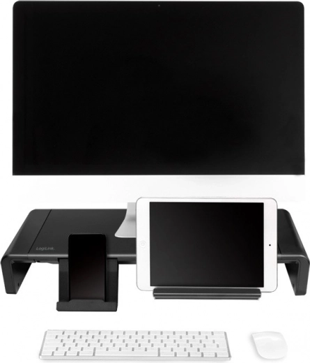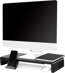 Podnieś monitor do komfortowej wysokości i schowaj klawiaturę oraz mysz pod podstawką. Zyskasz więcej miejsca i lepsze nawyki pracy.