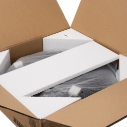 - Palenisko, piankowe i polistyrenowe zabezpieczenia, brązowe pudełko transportowe