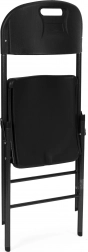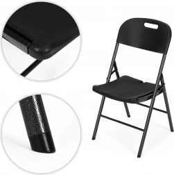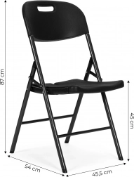 Krzesła składają się jednym ruchem, co umożliwia szybkie i łatwe przygotowanie miejsc do siedzenia dla większej liczby gości. Metalowa rama jest malowana proszkowo dla odporności na warunki pogodowe. Ochronne końcówki na nogach zapobiegają zarysowaniom podłóg i zapewniają stabilność krzesła.