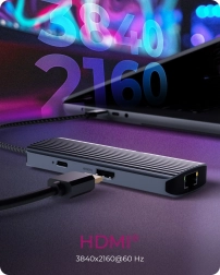 Ta stacja dokująca rozszerza możliwości Twojego laptopa dzięki sześciu portom, w tym HDMI, LAN i USB.