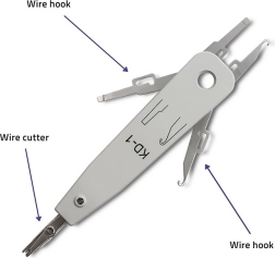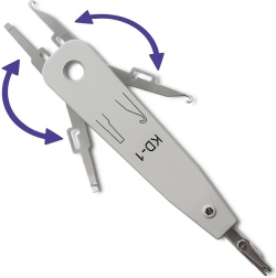 - Zaciskanie i cięcie przewodów w gniazdach telefonicznych i sieciowych oraz na patch panelach
