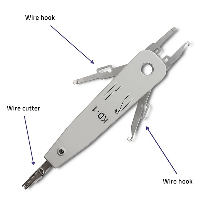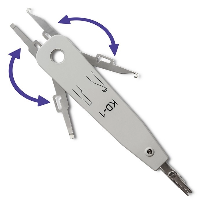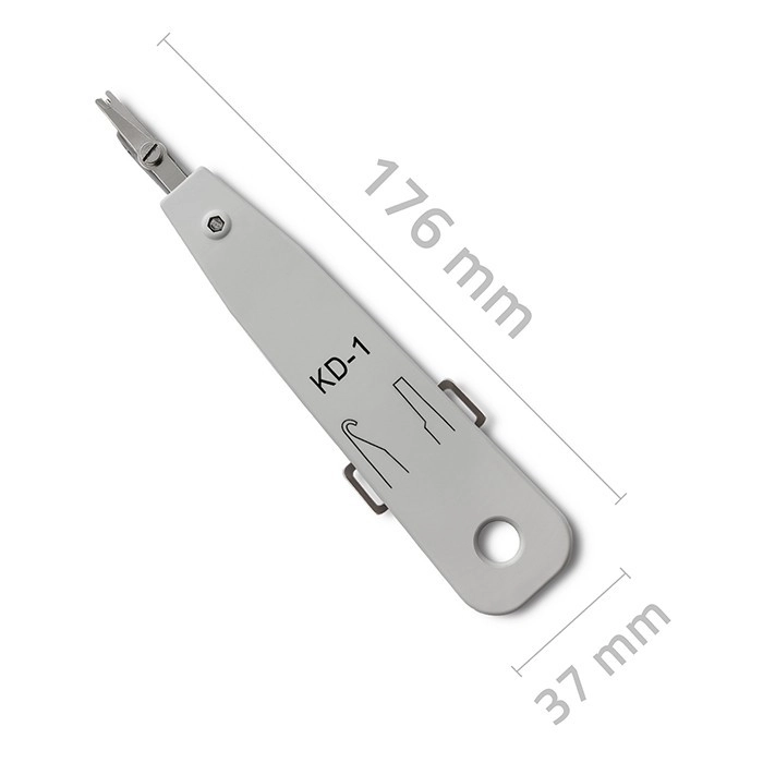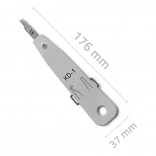Korpus z wytrzymałego tworzywa ABS gwarantuje wygodny chwyt i długą żywotność nawet przy codziennym użytkowaniu. Dwa wysuwane elementy boczne ułatwiają przeciąganie i wyciąganie przewodów, co przyspiesza pracę przy terminacji na patch panelach i gniazdach.