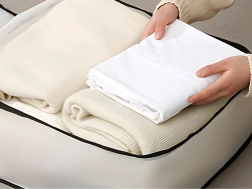 Organizer pomieści pościel, sezonowe ubrania, koce, ręczniki i inne tekstylia, umożliwiając ich zorganizowanie w szafie, pod łóżkiem lub na półce.