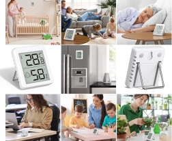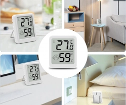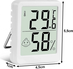 Utrzymuj zdrowe i komfortowe środowisko wewnętrzne dzięki temu mini termometrowi z higrometrem. Duży i czytelny wyświetlacz LCD pokazuje aktualną temperaturę oraz wilgotność względną, a buźka natychmiast wskaże, czy warunki są optymalne. Urządzenie jest idealne do sypialni, pokoju dziecięcego, biura, szklarni oraz do przechowywania żywności.