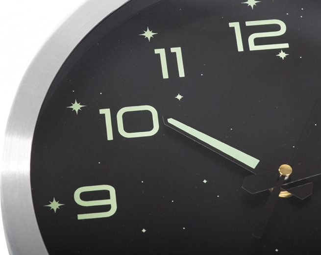 - Widoczność w ciemności: luminescencyjne cyfry, wskazówki i dekoracyjne gwiazdy