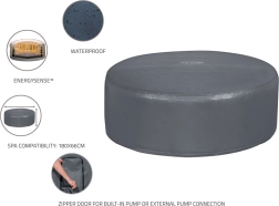 Kompatybilność z okrągłymi jacuzzi o średnicy 180 cm i wysokości 66 cm sprawia, że to idealne uzupełnienie wielu modeli LAY-Z-SPA. Praktyczne wykonanie umożliwia łatwe zakładanie i zdejmowanie oraz dostęp do panelu sterowania.